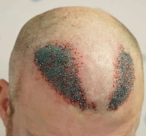 Uttaget av hårsäckarna planeras och utförs symmetriskt och jämnt för att donatorområdet ska se så orört ut som möjligt. Området läker snabbt och håret runt omkring täcker de små prickarna inom 1-2 veckor.